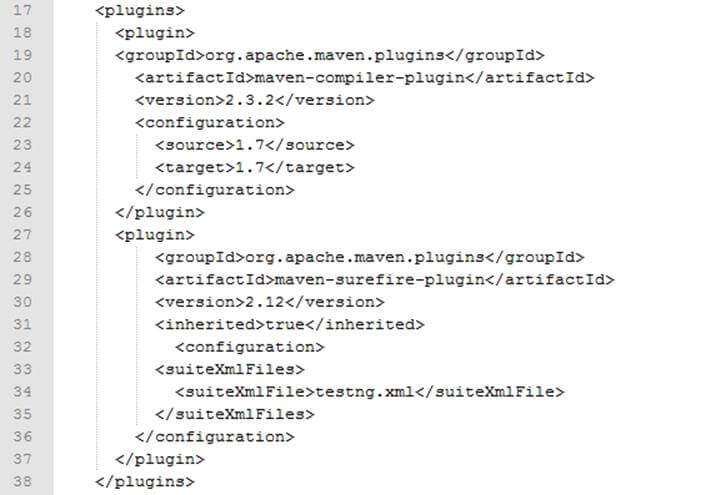 The maven-surefire-plugin is used to configure and execute tests. Here plugin is used to configure the testing.xml for TestNG test and generate test reports.
