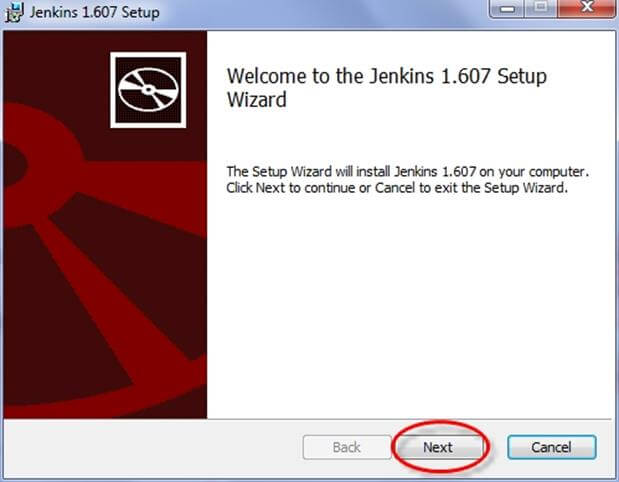 Step 2) Unzip Jenkins to specified folder. Run exe file as shown in following screenshot: