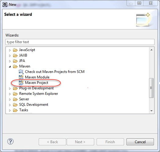 Step 7) Select the Maven project radio button as shown in the following screenshot: