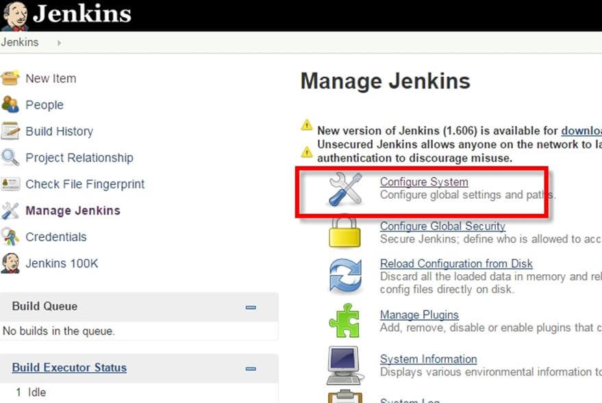 Step 7) Go to Manage Jenkins => Configure System as shown in the following screenshot.
