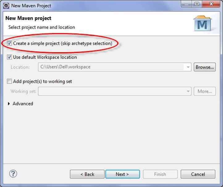 Step 3) On the New Maven Project dialog select the Create a simple project and click Next