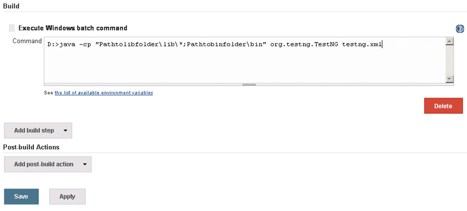 Scheduling builds(Selenium Tests) is one of the important features of Jenkins where it automatically triggers the build, based on defined criteria. Jenkins provides multiple ways to trigger the build process under the Build Trigger configuration.