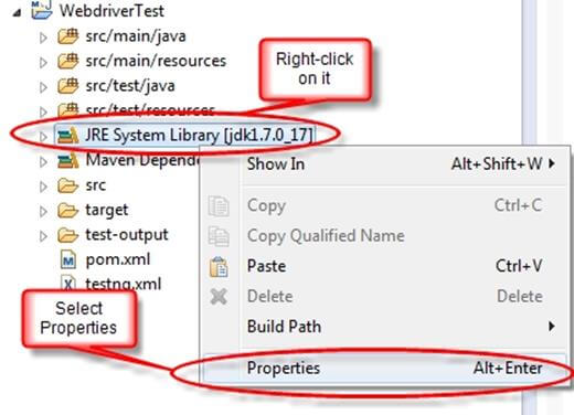 Step 6) Right-click on JRE System Library and select the Properties option from the menu.