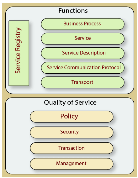 Business Process: This component represents the group of services called in a certain predefined sequence associated with the specific rules to meet the business demands.