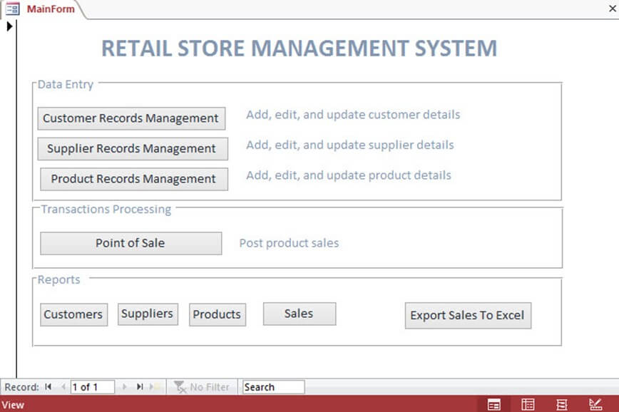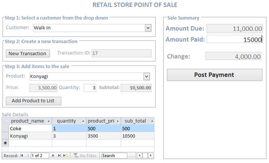 This tutorial shows you the practical steps involved in developing an information system and explained a prototype of a POS (point of sale) system. The system has been developed using Visual Basic for Applications (VBA) in Microsoft Access.