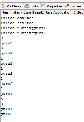 Hence, first, we get guru1 then guru2 then again guru2 because the thread sleeps here for 1000 milliseconds and then next guru1 and again guru1, thread sleeps for 1000 milliseconds, so we get guru2 and then guru1.