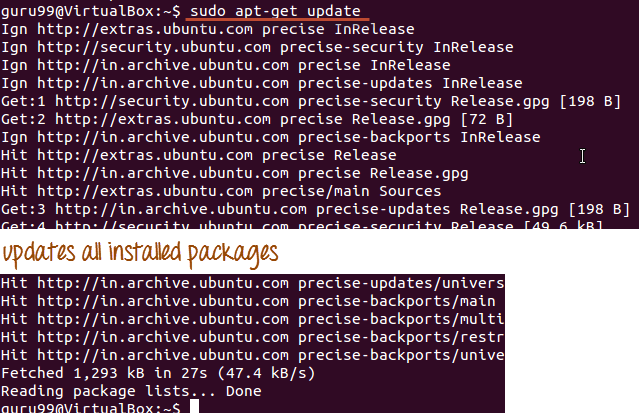 You can use the apt commands to install or remove a package. Let's update all the installed packages in our system using command -