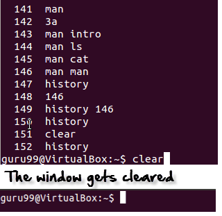 This command clears all the clutter on the terminal and gives you a clean window to work on, just like when you launch the terminal.