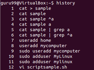 History command shows all the basic commands in Linux that you have used in the past for the current terminal session. This can help you refer to the old commands you have entered and re-used them in your operations again.