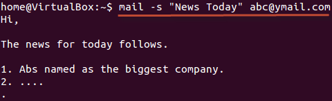 Press Cntrl+D you are finished writing the mail. The mail will be sent to the mentioned address.