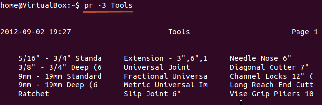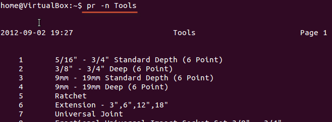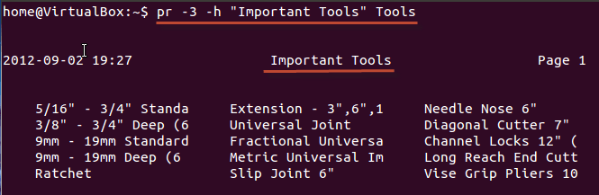 Let's try out some basic Unix commands list which can print files in a format you want. What more, your original file does not get affected at all by the formatting that you do. Let us learn about these commands and their use. This command helps in formatting the file for printing on the terminal. There are many options available with this command which help in making desired format changes on file. The most used 'pr' options are listed below.
