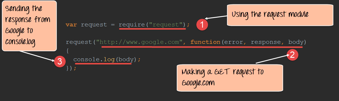 The above command requests the Node package manager to download the required request modules and install them accordingly.