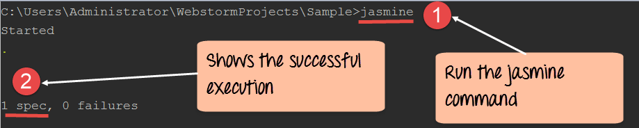 Step 2) Initializing the project – By doing this, jasmine creates a spec directory and configuration json for you. The spec directory is used to store all your test files. By doing this, jasmine will know where all your tests are, and then can execute them accordingly. The JSON file is used to store specific configuration information about jasmine.