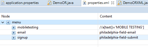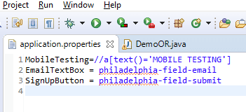 MobileTesting=//a[text()='MOBILE TESTING'] EmailTextBox = philadelphia-field-email SignUpButton = philadelphia-field-submit