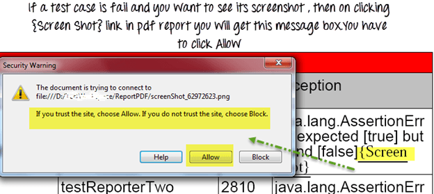 Note: When we click on the screen shot link in pdf, it shows security dialog. We have to allow this dialog to open pdf.