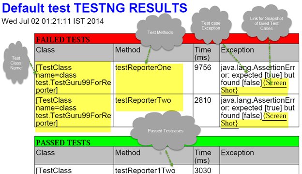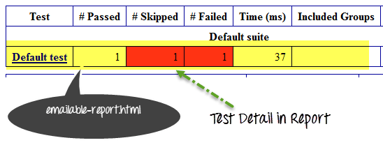 emailable-report.html: This is the summarize report of the current test execution which contains Test Case message in green (for pass test cases) and red(for failed test cases) highlight.