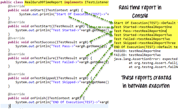 RealgtupapersTimeReport.java is the real time reporting class. It will implement ITestListener interface for reporting