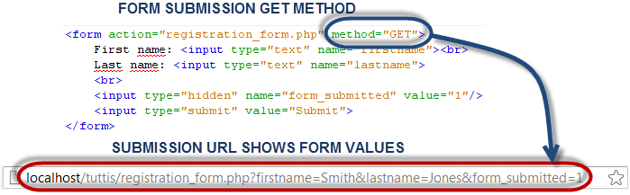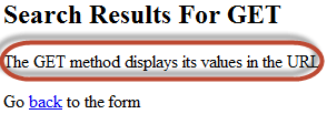 Note the URL has displayed the value of search_term and form_submitted. Try to enter anything different from GET then click on submit button and see what results you will get.