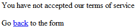 <p>You have not accepted our terms of service</p>
