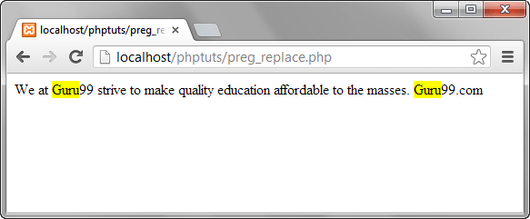?>Assuming you have saved the file preg_replace.php, browser to the URL http://localhost/phptuts/preg_replace.php