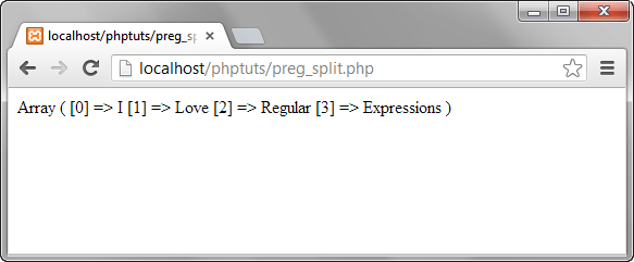 ?>Browse to the URL http://localhost/phptuts/preg_split.php