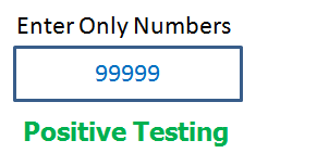 There is a text box in an application which can accept only numbers. Entering values up to 99999 will be acceptable by the system and any other values apart from this should not be acceptable. To do positive testing, set the valid input values from 0 to 99999 and check whether the system is accepting the values.