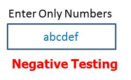 Negative testing can be performed by entering characters A to Z or from a to z. Either software system should not accept the values or else it should throw an error message for these invalid data inputs.