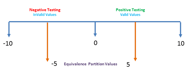 Numeric values Zero to ten can be divided into two (or three) partitions. In our case, we have two partitions -10 to -1 and 0 to 10. Sample values (5 and -5) can be taken from each part to test the scenarios.