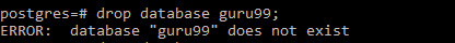 However, this command can be executed only by the database owner. You also can't execute this command while someone is connected with the target database. You need to connect to some other database to execute the DROP DATABASE command.