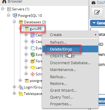 Step 1) Right Click on database "gtupapers" and click "Delete/Drop."