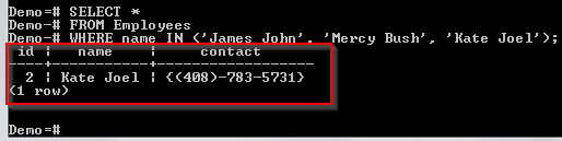 The list can be a set of numbers of strings or even the output result of a SELECT statement as shown below: