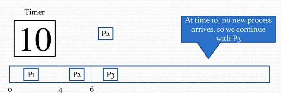 Step 10) At time interval 10, no new process comes, so we continue with P3