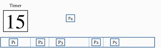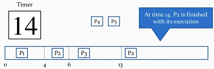 Step 14) At time =14, the P2 process has finished its execution. P4 and P5 are in the waiting state. P5 has the highest priority and starts execution.