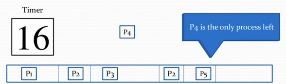 Step 16) At time= 16, P5 is finished with its execution. P4 is the only process left. It starts execution.