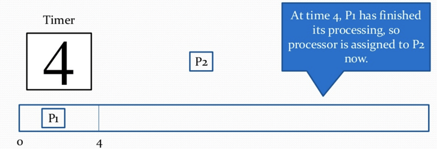 Step 4) At time 4, P1 has finished its execution. P2 starts execution.