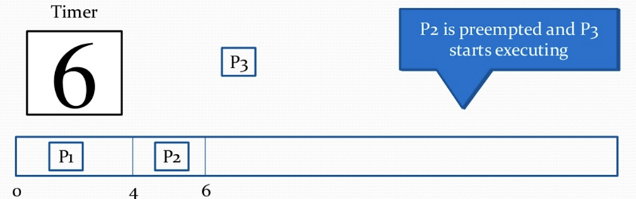 In Preemptive Scheduling, the tasks are mostly assigned with their priorities. Sometimes it is important to run a task with a higher priority before another lower priority task, even if the lower priority task is still running. The lower priority task holds for some time and resumes when the higher priority task finishes its execution.