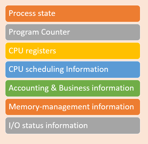 Process operations can be easily controlled with the help of PCB(Process Control Block). You can consider it as the brain of the process, which contains all the crucial information related to processing like process id, priority, state, CPU registers, etc.