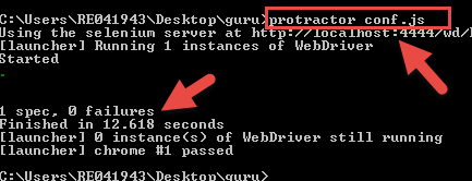 Step 4) Open the command prompt and execute command protractor conf.js.