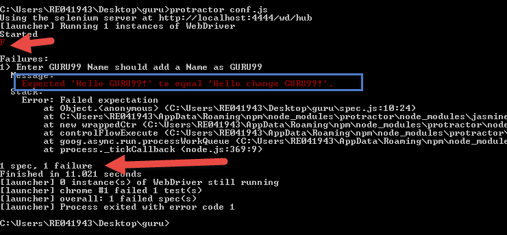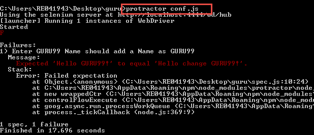 Step 2) Save the spec.js file and repeat above steps of "Execution of the Code" section