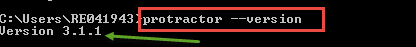 Step 2) Check the installation and version using "Protractor --version." If successful it will show the version as like in below screenshot. If not, perform the step 1 again.