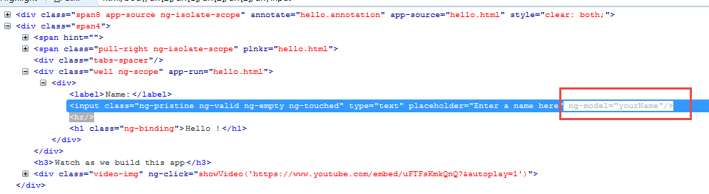 Here we are finding the web element using the Model name as "yourName," which is the value of "ng-model" on the web page. Check the screen shot below-