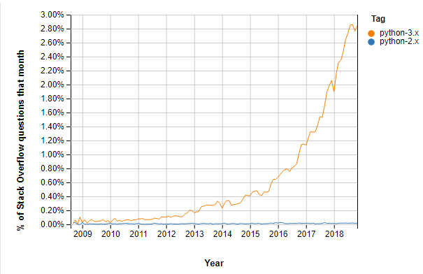 When it comes to Python version 2 vs. 3 today, Python 3 is the outright winner. That's because Python 2 won't be available after 2020. Mass Python 3 adoption is the clear direction of the future.