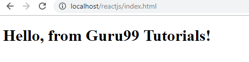 ReactDOM.render will add the <h1> tag to the element with id root. Here is the html file we are having: