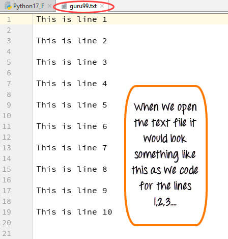 f.write("This is line %d\r\n" % (i+1))Step 3)