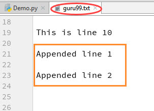 f=open("gtupapers.txt", "a+")Once again if you could see a plus sign in the code, it indicates that it will create a new file if it does not exist. But in our case we already have the file, so we are not required to create a new file for Python append to file operation.