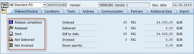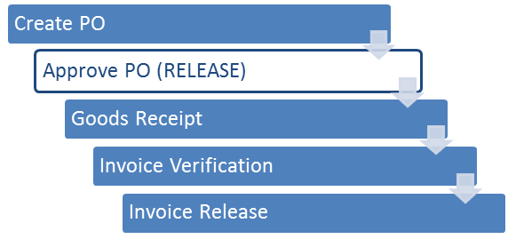 Important information to know is that a purchasing document cannot be changed after it is released. That means that only the final version should be released. Unreleased documents (RFQ – request for quotation, PO – purchase order, scheduling agreement, contract) cannot be processed further (convert RFQ to quotation, PO to goods receipt, invoice verification). Process flow: