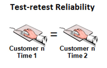 To estimate test-retest reliability, a single group of examinees will perform testing process only a few days or weeks apart. The time should be short enough so that the examinees skills in the area can be assessed. The relationship between the examinee's scores from two different administrations is estimated, through statistical correlation. This type of reliability demonstrates the extent to which a test is able to produce stable, consistent scores across time.