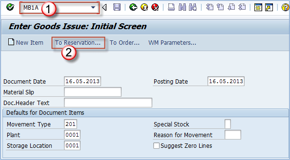 We can use the transaction code MB1A to create a goods issue with reference to material reservation.