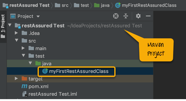 Step 1) Create a class named as "myFirstRestAssuredClass"