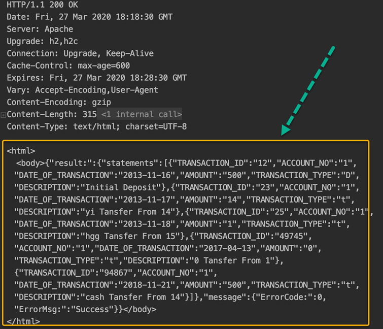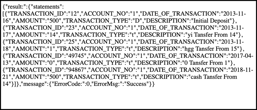 Open your browser and hit - http://demo.gtupapers.com/V4/sinkministatement.php?CUSTOMER_ID=68195&PASSWORD=1234!&Account_No=1. Ensure you see something as below.